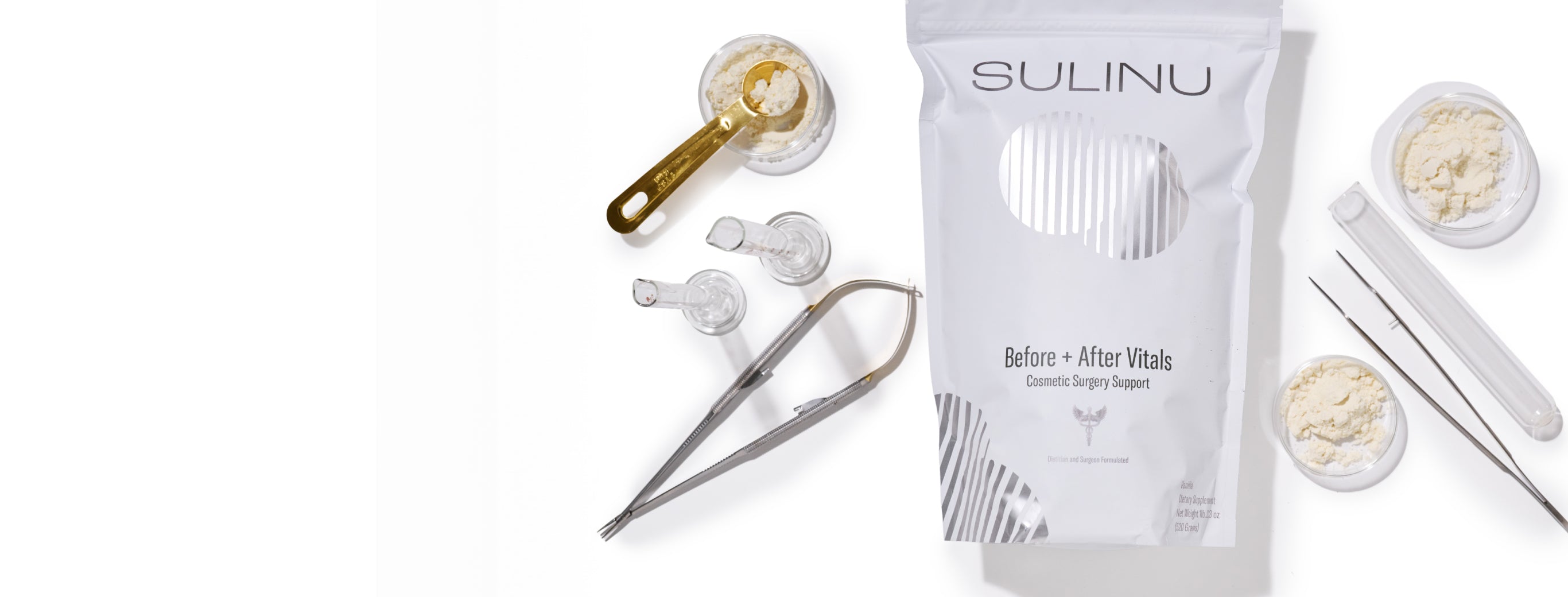 Sulinu’s Before + After Vitals contains both micronutrientsand macronutrients, including the high doses of amino acids imperative for healing.